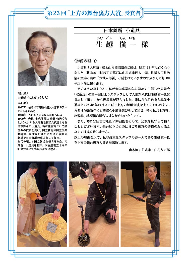 大 賞:生越 愼一 殿 日本舞踊 小道具
